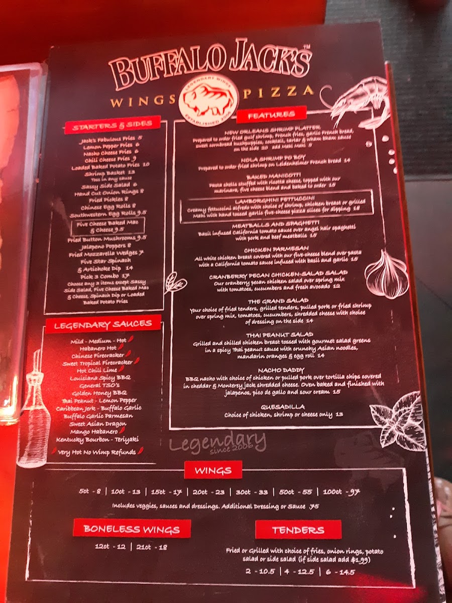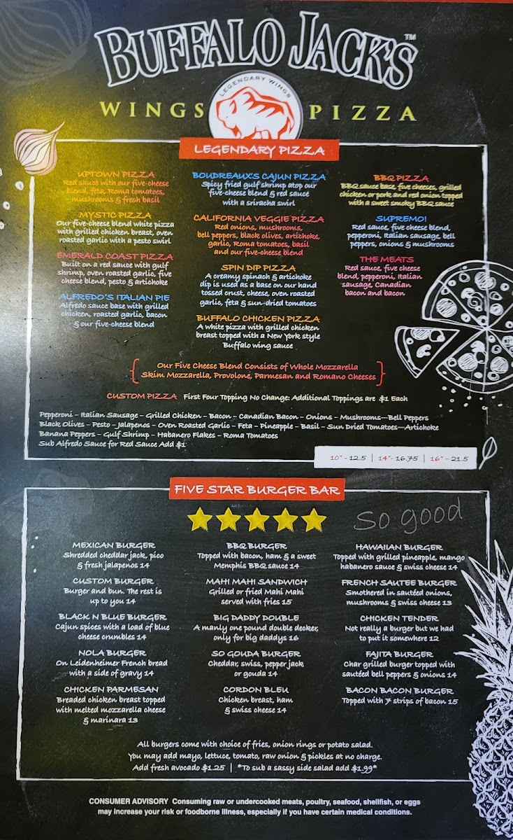 Welcome to Buffalo Jack's Legendary Wings & Pizza, a culinary gem located in Miramar Beach, Florida. This vibrant spot is renowned for its mouthwatering wings and delicious pizzas, crafted to satisfy every craving. Dive into a menu that features a variety of tantalizing options ranging from classic buffalo wings to unique flavors like Caribbean jerk and lemon pepper dry rub.
